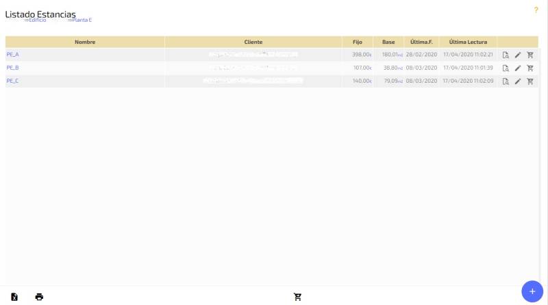 Una vez seleccionado en el Árbol de Localizaciones la estancia que queremos visualizar, nos aparece en este cuadro la lista de estancias asociadas a clientes.